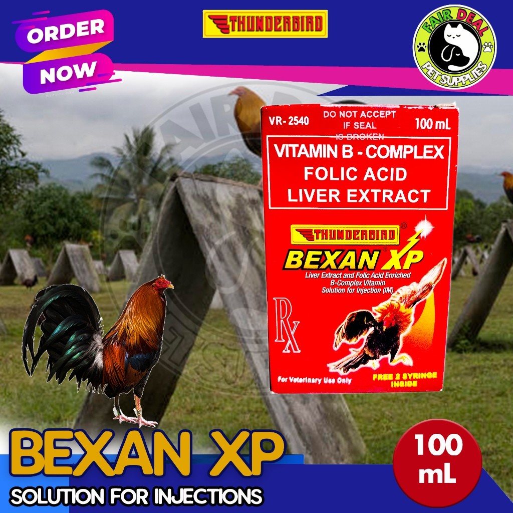 BEXAN XP is an Injectable Vitamin B-Complex fortified with Folic Acid + Liver Extract for Game fowl that enhances the blood circulation resulting in enhanced appetite and rapid growth of body tissues.