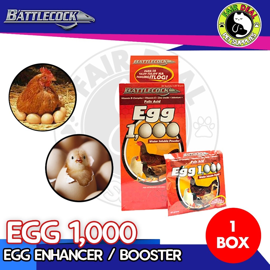 Egg 1000(Water Soluble Powder) Lamang sa Pangingitlog ang manok mo! Formulation: Zinc (Zinc Oxide)2,200 mg Alpha tocopheryl acetate (Vitamin E)1,452 mg Pyridoxine HCl (Vitamin B6)110 mg Thiamine HCl (Vitamin B1)48.40 mg Folic Acid (Vitamin B9)37.40 mg Selenium (Sodium Selenite)6.60 mg Cyanocobalamin (Vitamin B12)600 mcg Indications: EGG 1,000 Water Soluble Powder increases fertility, improves egg quality, and continues egg production. (Ang EGG 1,000 Water Soluble Powder ay nag papataas ng fertility, nagpapabuti ng kalidad ng itlog, at nagpapatuloy na produksyon ng itlog. Dosage and Administration Mix 1 teaspoon (5g) of EGG 1,000 into 1 gallon (4L) of water and administer for 5 – 7 days. (Ihalo ang 1 teaspoon (5g) na EGG 1,000 sa 1 gallon (4L) tubig at ipainom lima hanggang pitong araw.) For best result; Give the EGG 1,000 Water Soluble Powder in morning and VITMINPRO Water Soluble Powder in the afternoon. (Para sa mas magandang resulta; Mag-bigay ng EGG 1,000 Water Soluble Powder sa umaga at VITMINPRO Water Soluble Powder sa hapon.) One sachet of EGG 1,000 Water Soluble is good for 25 heads. Storage: Store at room temperature not more than 30°C.