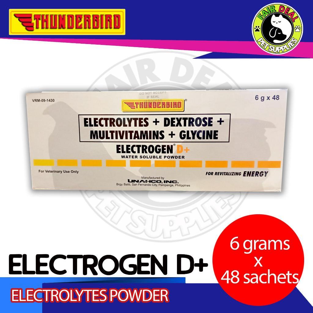 ELECTROGEN D+ is a water soluble supplement that contains electrolytes, dextrose and multivitamins used for recharging fighting cocks after battle or strenuous training by replacing vital electrolytes, vitamins and energy.