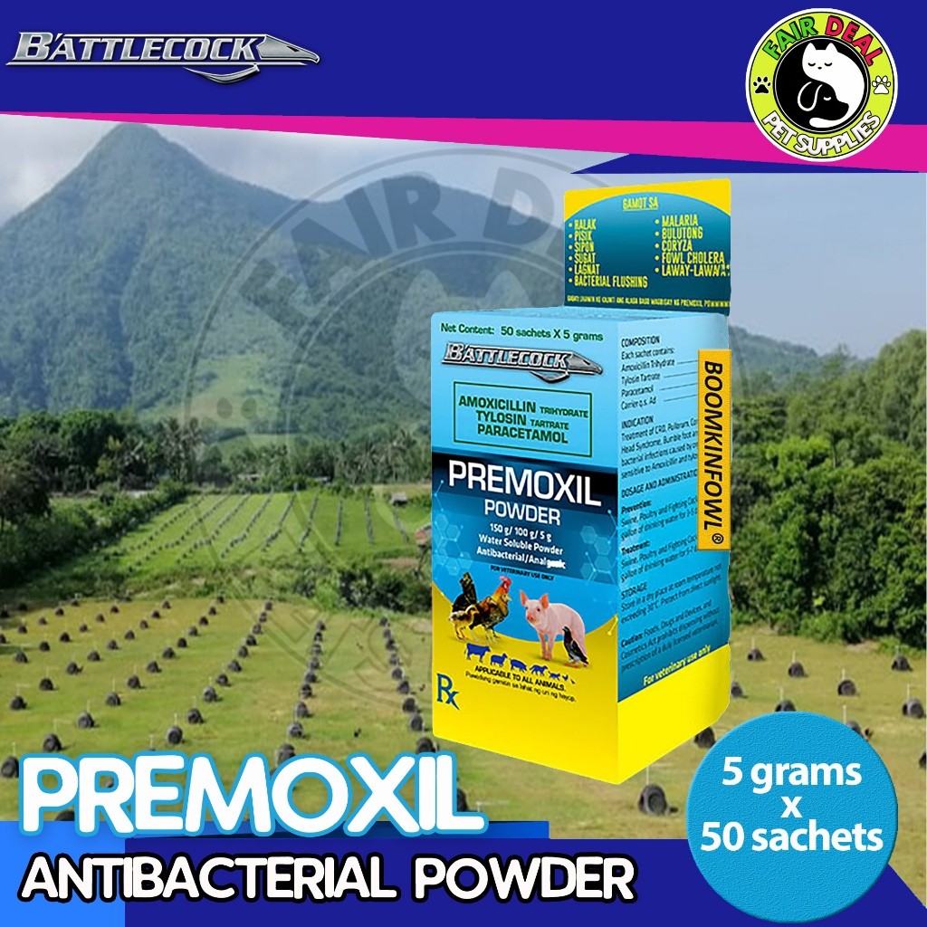Premoxil Powder is the only game fowl in the market with Paracetamol. It is specially formulated to give younger game fowls faster relief from sickness. This product is now repackaged in a new box for a more exciting and vibrant look. Premoxil Powder is another quality product from Battlecock, the makers of Wormal Tablets.