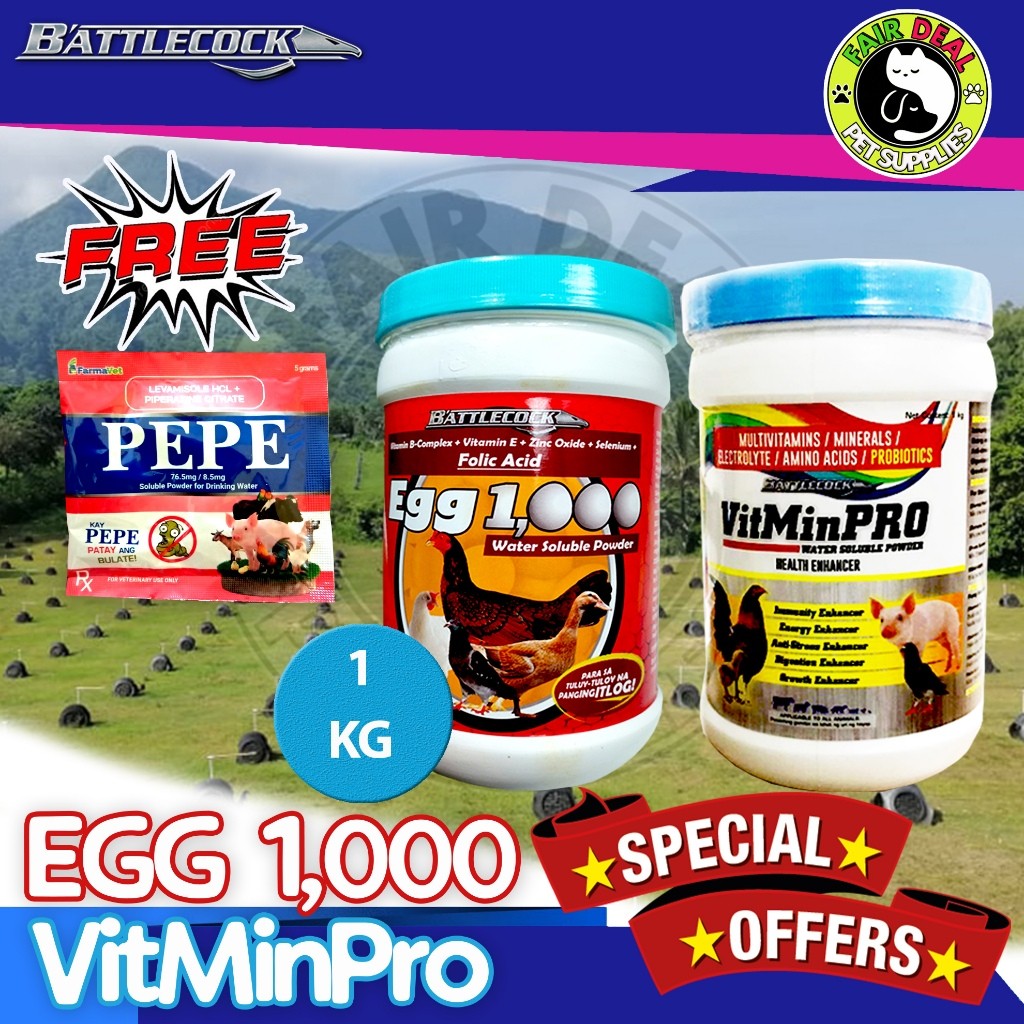 For best result; Give the EGG 1,000 Water Soluble Powder in morning and VITMINPRO Water Soluble Powder in the afternoon. (Para sa mas magandang resulta; Mag-bigay ng EGG 1,000 Water Soluble Powder sa umaga at VITMINPRO Water Soluble Powder sa hapon.)